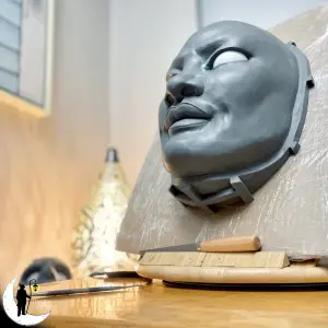 - Then it’s onto the final draft of the mask sculpture (clay form) and your final design approval.